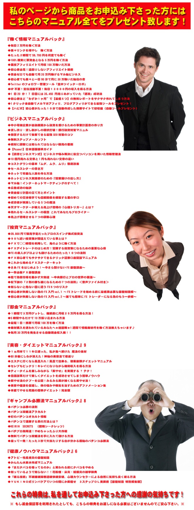 あなたが欲しい情報商材に、無料特典をお付けするスペシャルページ!お得にGetしたい方は、こちらをご覧下さい。